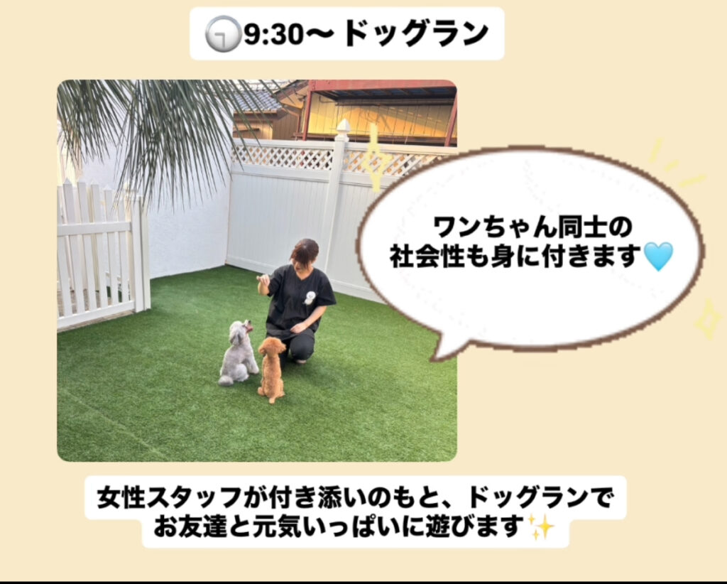 ほかのワンちゃんたちとの時間を通して、少しずつ社会性を育てていくきっかけになります🐾