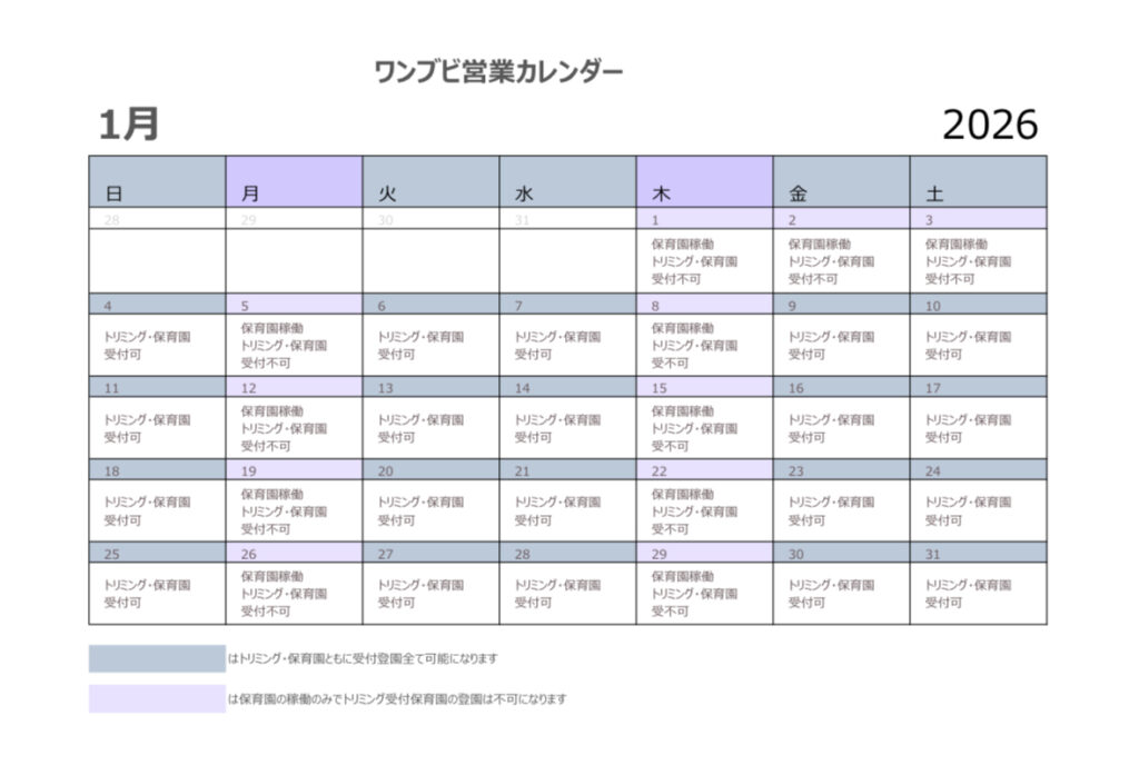 ※大型犬・高齢犬のトリミング受付日は以前送らせていただいたカレンダーに掲載しています📚