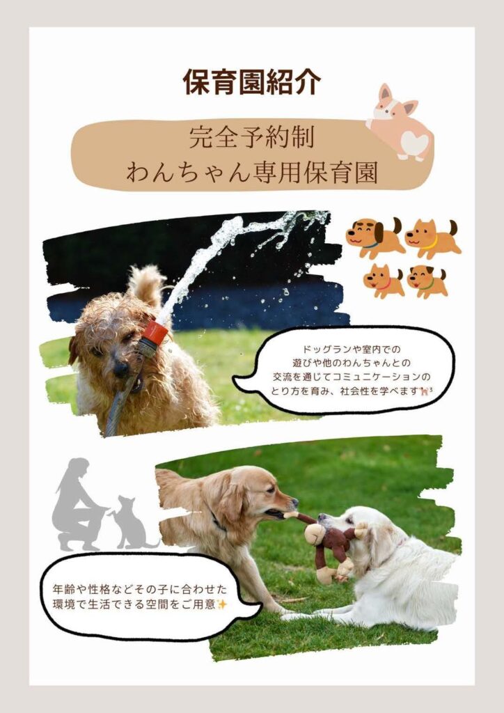 敷地内に人工芝のドックランを完備しているので他のわんちゃんと社会性も同時に学ぶことが可能