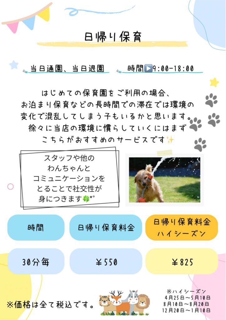 一般のお客様またはトリミングなどと別日でご利用の場合