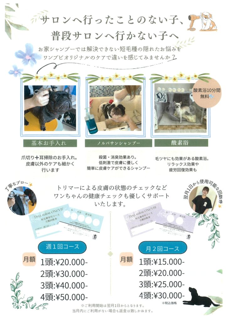 美容に特化した美容コース、皮膚のケアに優れた皮膚ケアコースなどワンブビオリジナルのVIPコースをご準備